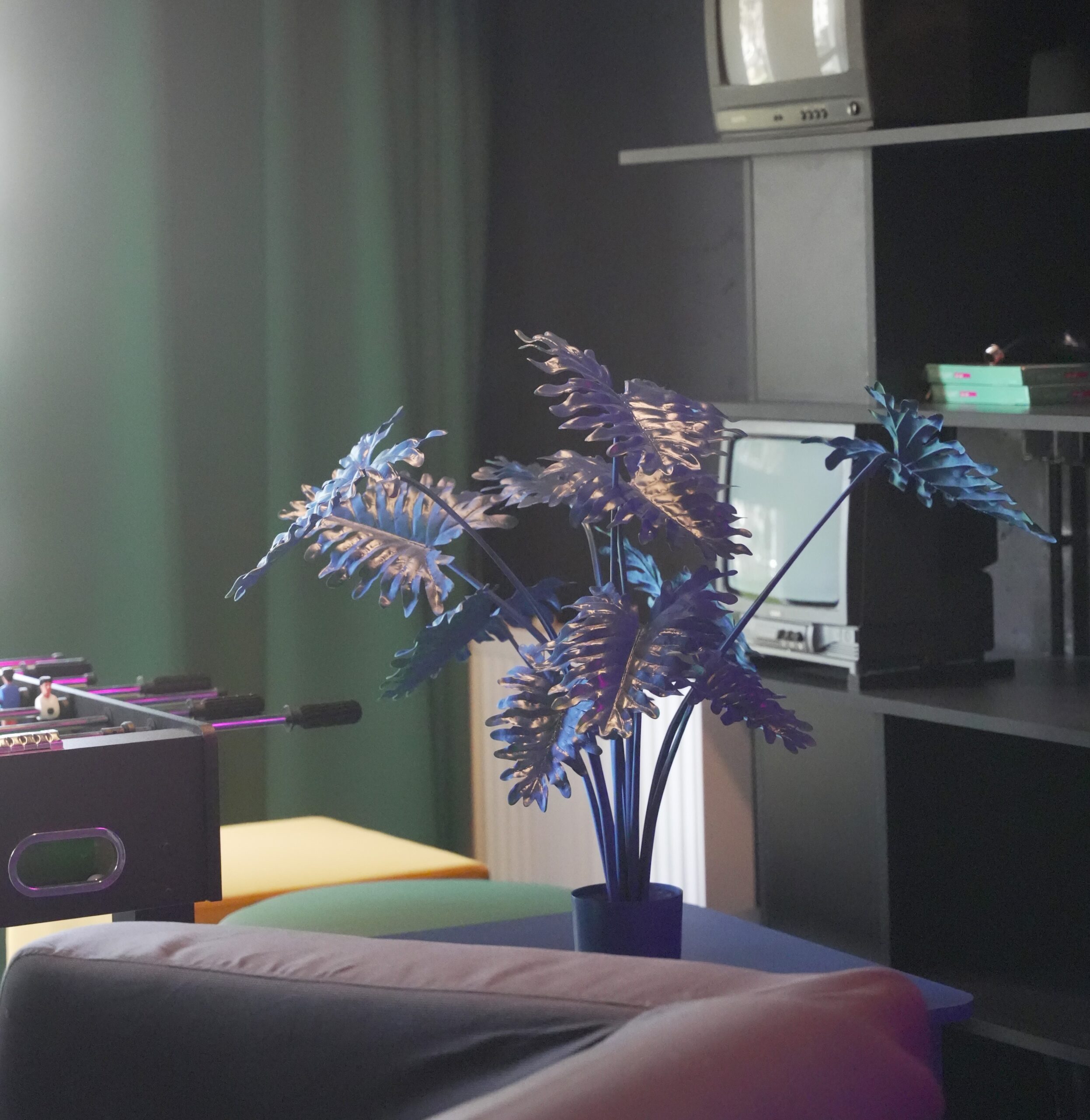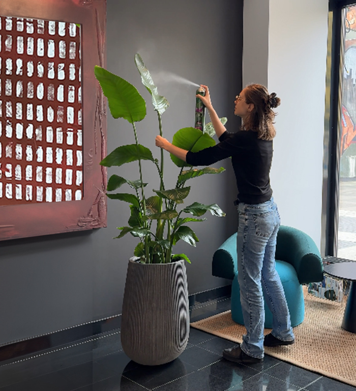 Wykonaliśmy rośliny sztuczne w dokładnie takich barwach, jakie przewidywał projekt, dopasowane do intensywnych kolorów wnętrz. Prezentują się bardzo nowocześnie i wnoszą świeżość do wyrazistych aranżacji.